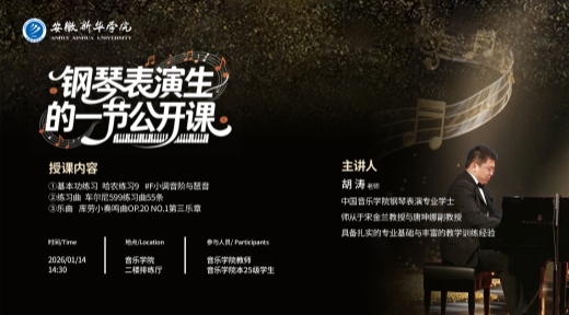 1月14日,我院于音乐学院二楼排练厅圆满举办“钢琴表演生的一节公开课”专题教学活动。...