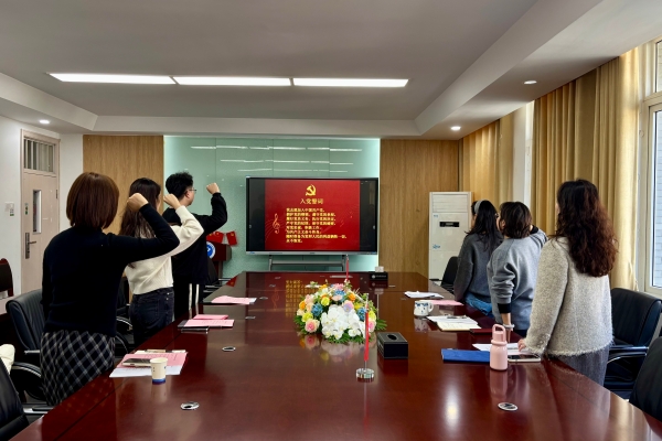 在随后举行的重温入党誓词环节中,在党支部书记彭智同志的领誓下,全体党员面向鲜红党旗,高举右拳,庄严宣誓。铿锵有力的誓言,进一步坚定了党员理想信念,强化了责任意识和使命担当。